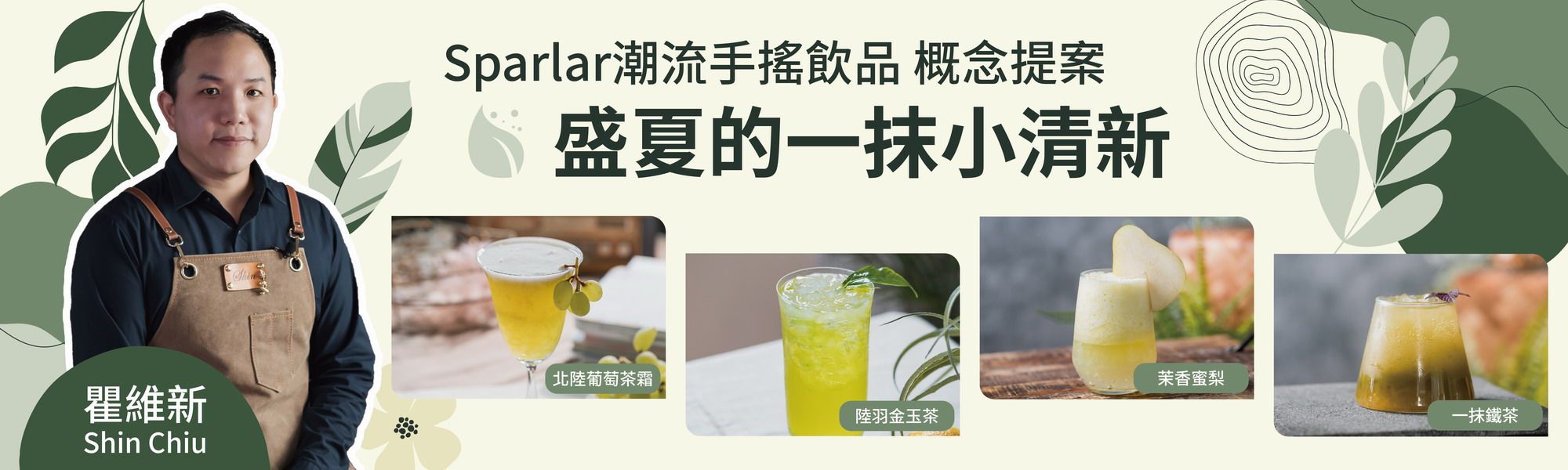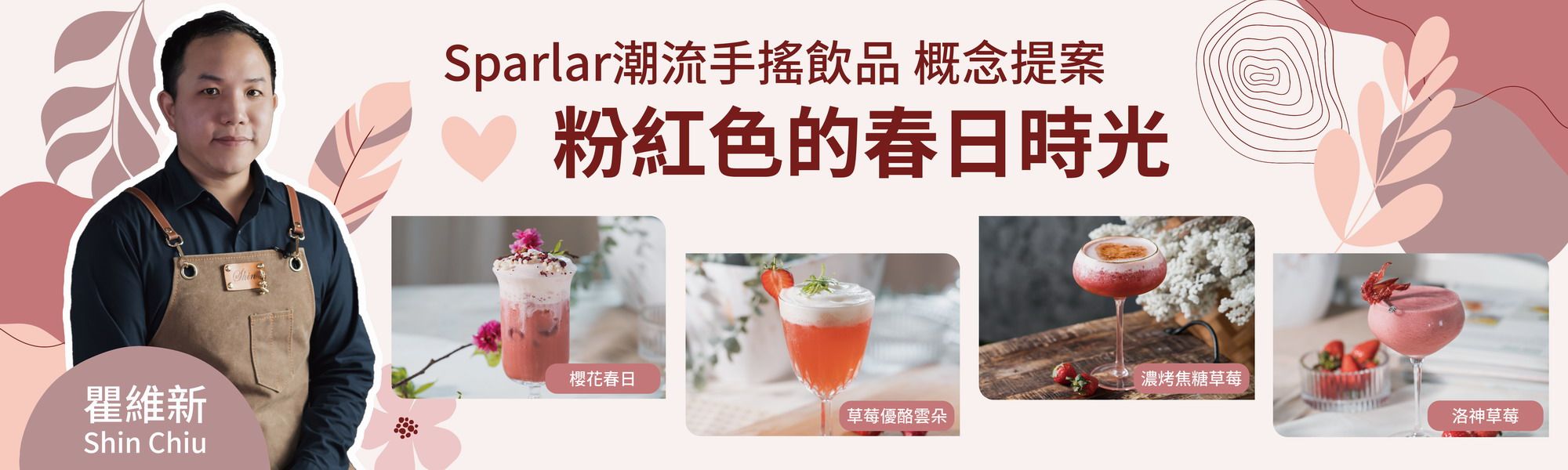 Sparlar潮流手搖飲品概念提案食伯樂邀請在業界闖盪20多年、擔任多家餐飲公司經營開發顧問的瞿維新老師。以春夏印象櫻花、青葡萄、草莓凍、茶香等口味輕盈、香氣飽滿的素材作為主體。結合法式餐飲關鍵邏輯多種元素、層層堆疊的手法及世界調酒新趨勢無酒精調酒。既不含酒精,也不是軟性飲料,是一杯全天都可以享用的漂亮飲品。透過這樣的概念提案,邀請您與我們一起引領飲品新風潮!