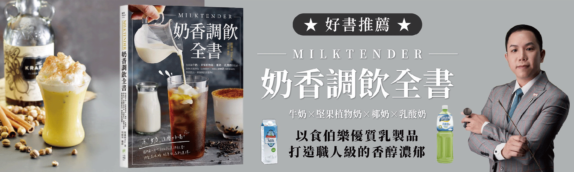 以食伯樂優質乳製品 打造職人級的香醇濃郁《Milktender奶香調飲全書》裡面除了用到市面上常見的牛乳、乳酸奶和最夯的各種植物奶,也應用了食伯樂的各式原物料,如果想更加了解食伯樂產品的應用方式,參考這本《Milktender奶香調飲全書》準沒錯!如果是調飲新手也別擔心,書中除了詳列了所有食材、品牌原料,更從泡茶、備料到盛杯一步步帶領您完成,不管是想要開店或已經開店的您都值得閱讀這本《Milktender奶香調飲全書》!