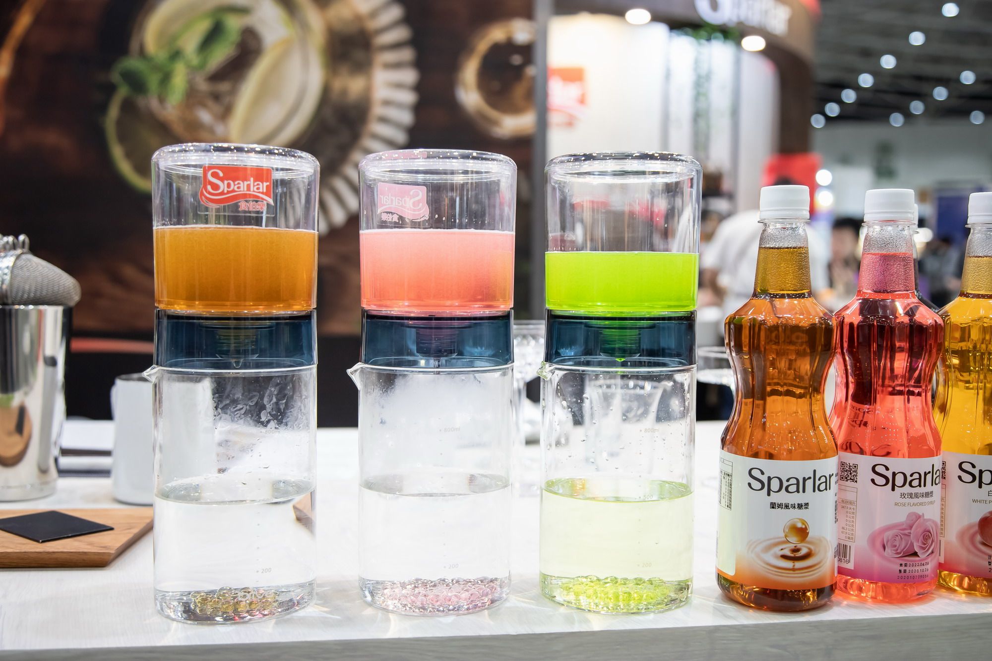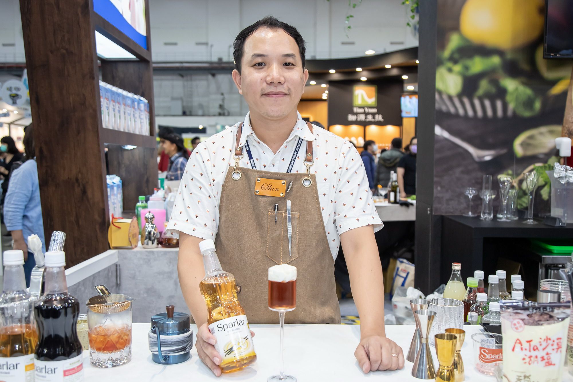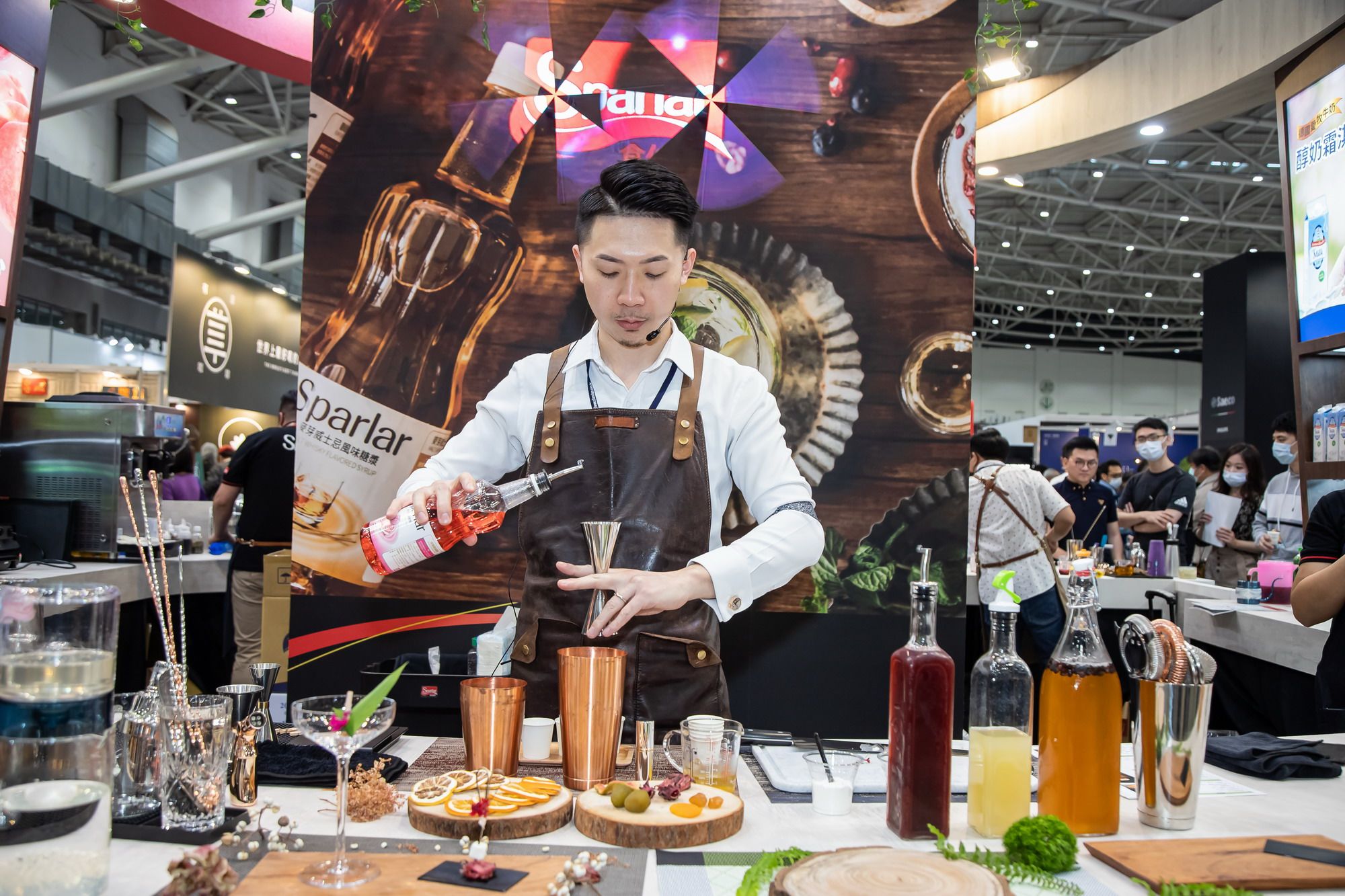 賦予每杯飲品獨一無二的靈魂概念羅健聞老師是「2017年世界盃咖啡調酒大賽台灣選拔賽(TCIGS)冠軍指導教練」,咖啡展展會期間,羅健聞老師以Sparlar產品特調出各式潮流飲品,用創意激盪出全新火花,帶給每一位來賓難忘的深刻體驗。在業界闖盪20多年、擔任多家餐飲公司經營開發顧問的瞿維新老師,巧妙運用食伯樂原料,特調出一杯杯顛覆一般想像的創新飲品。路易莎咖啡前共同創辦人盧書儀老師,也親臨現場擔任顧問,針對客戶實務需求,提供指導與教學,為來賓找出最適合的客製化Best Solutions。現場吧檯提供9種風味那提(蘭姆、麥芽威士忌、烤堅果、焦糖、黑糖、香草、白桃、玫瑰、莓果),加入風味糖漿的那提甜而不膩、香醇濃郁,入口後香氣縈繞舌尖經久不散;6款精選咖啡(接骨木冰搖、荔香冰搖、紅絲絨摩卡、香蕉卡布奇諾、榛果巧克力卡布、太妃核果瑪奇朵)味道豐富有層次,細細品嘗,好像來了場舌尖上的旅行;2種牛奶飲(金麥牛奶、微醺藍眼淚)香醇濃厚,彷彿帶領我們回到最單純的那些年;2種清爽氣泡飲(微瓜氣泡、結菓香檳氣泡)富滿活力,糖漿與氣泡在口中碰撞,交織出一首首青春活潑的圓舞曲;4款甜蜜冰品(醇奶霜淇淋、白桃莓果冰沙、優酪冰沙藍莓莓凍、優酪冰沙接骨木蔓越莓凍)則如同愛戀的滋味,純粹美好且令人難忘。