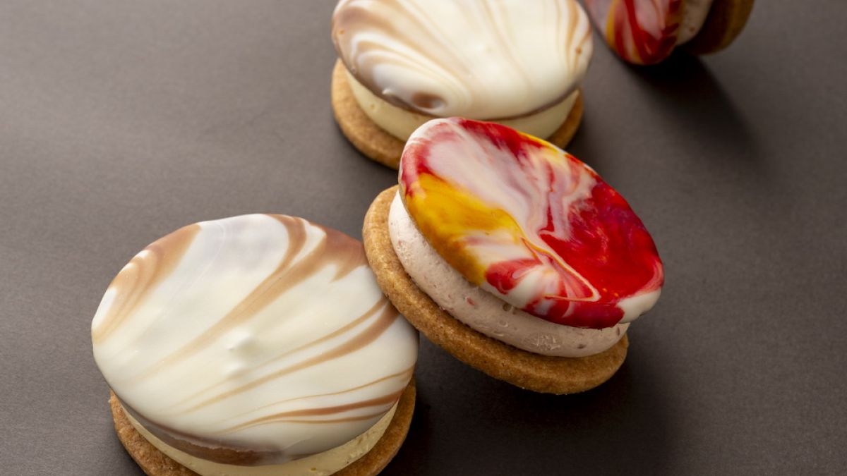 冬‧綿 莎布蕾夾心 份量:約50組(一組兩顆) 保存:冷藏「綿」是形容夾心內餡的綿密口感,以及餅乾體上巧克力淋面像雲層般綿密柔軟的感覺。海藻糖TREHA®改善了奶油餡常有的甜膩感,突顯各種食材的原有風味。透過組合當季食材入餡,創造多元變化。◣ 本食譜由 山田隼人師傅 特為日本海藻糖西點應用講習會 開發設計◣ 本影片由 台北城市科技大學 烘焙創意與經營管理學士學位學程主任 李國溢副教授 示範