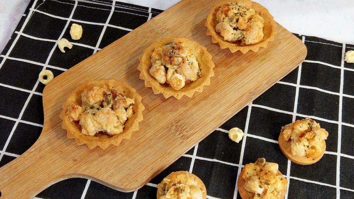 以荷蘭高達起司製成的酥脆起司絲,經高溫烘烤仍可維持金黃酥脆的質地。以酥脆起司絲取代部分堅果,除了能為堅果塔增添起司風味也能同時保留酥脆有嚼勁的口感。除了放在塔皮中享用,與小酥餅搭配享用也很美味喔。