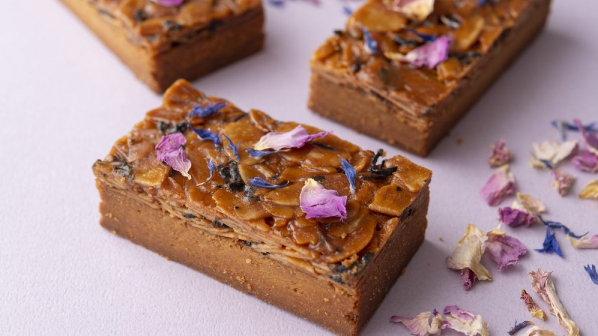 秋‧錦 佛羅倫斯酥餅 份量:烤盤1盤(43*34*3cm) 保存:常溫佛羅倫斯酥餅,沉穩的茶香搭配花香,讓人想到秋天。秋‧錦取自什錦和花團錦簇的意象,呈現出此食譜的豐富香氣及口感層次,讓人沉醉。用海藻糖TREHA®和海樂糖HALLODEX®增加脆感並將低表面反潮沾黏。針對本次講習會,特別加入花卉及茶香元素。◣ 本食譜由 山田隼人師傅 特為日本海藻糖西點應用講習會 開發設計◣ 本影片由 台北城市科技大學 烘焙創意與經營管理學士學位學程主任 李國溢副教授 示範