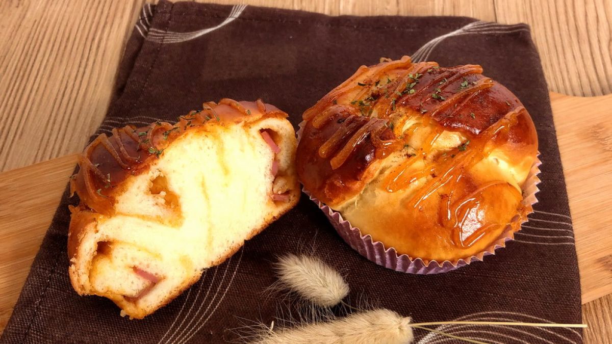 1. 取經典麵糰80g,抹上15g美式炭烤抹醬
