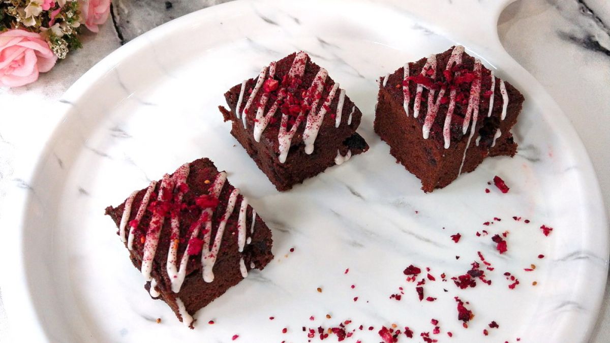 帶有濕潤的口感,咬下時傳來濃郁巧克力香氣,酒漬莓果增加微酸甜感,讓布朗尼吃來不膩口。巧克力淋面及蔓越莓碎片裝飾,讓人瘋狂打卡的IG系少女風甜品。