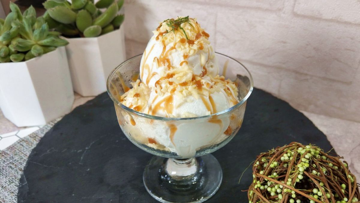 乳香十足、甜而不膩的冰淇淋,上面灑上鹹香鹹脆的起司絲,再淋上擁有香醇牛奶糖甜蜜的太妃糖醬,讓您一口就能嚐到3種滋味、口感。除了搭配太妃糖醬,淋上烤堅果風味糖漿及麥芽威士忌糖漿也有不同的口感、玩趣呦!