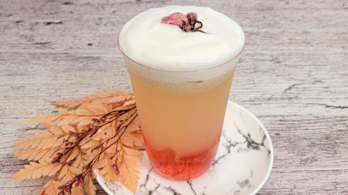 飲用時Q彈的粉櫻粉粿在口中迸出櫻花的粉及荔枝的香,最後以鹽味及檸檬淡雅來完美這一杯。