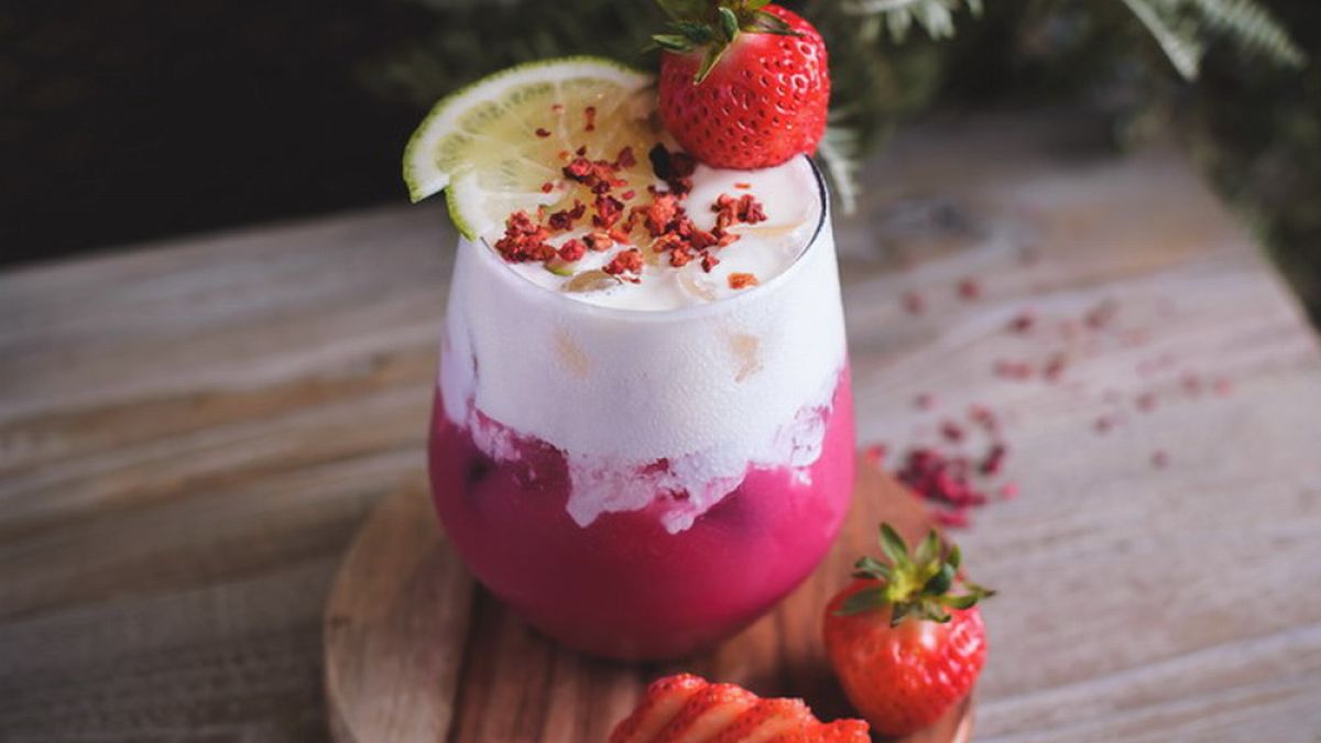 以優酪思果乳酸菌飲料做為主體,搭配草莓覆盆子茶,溫潤茶湯中帶酸甜風味,加入香蕉牛奶糖醬,讓飲品增添牛奶糖的濃郁與香蕉甜香氣息。頂端醇厚乳白的奶霜繽下,飲品呈現紛桃紅亮麗色澤,無疑是春季最搶眼的色系,令人率先感受到浪漫氣息!◣ 本食譜由 羅建聞ROCK老師 開發設計