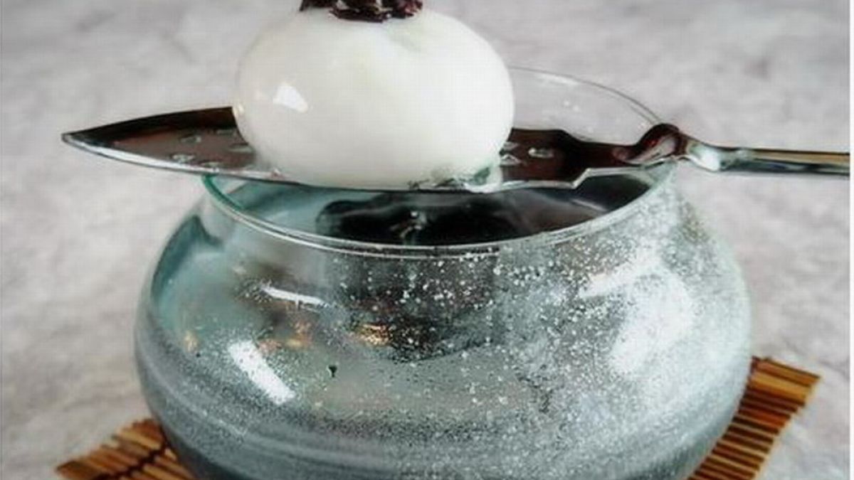 2. 將茶湯放入竹炭粉攪拌均勻,再放入焙妮樂藍莓碎片,冰鎮備用。