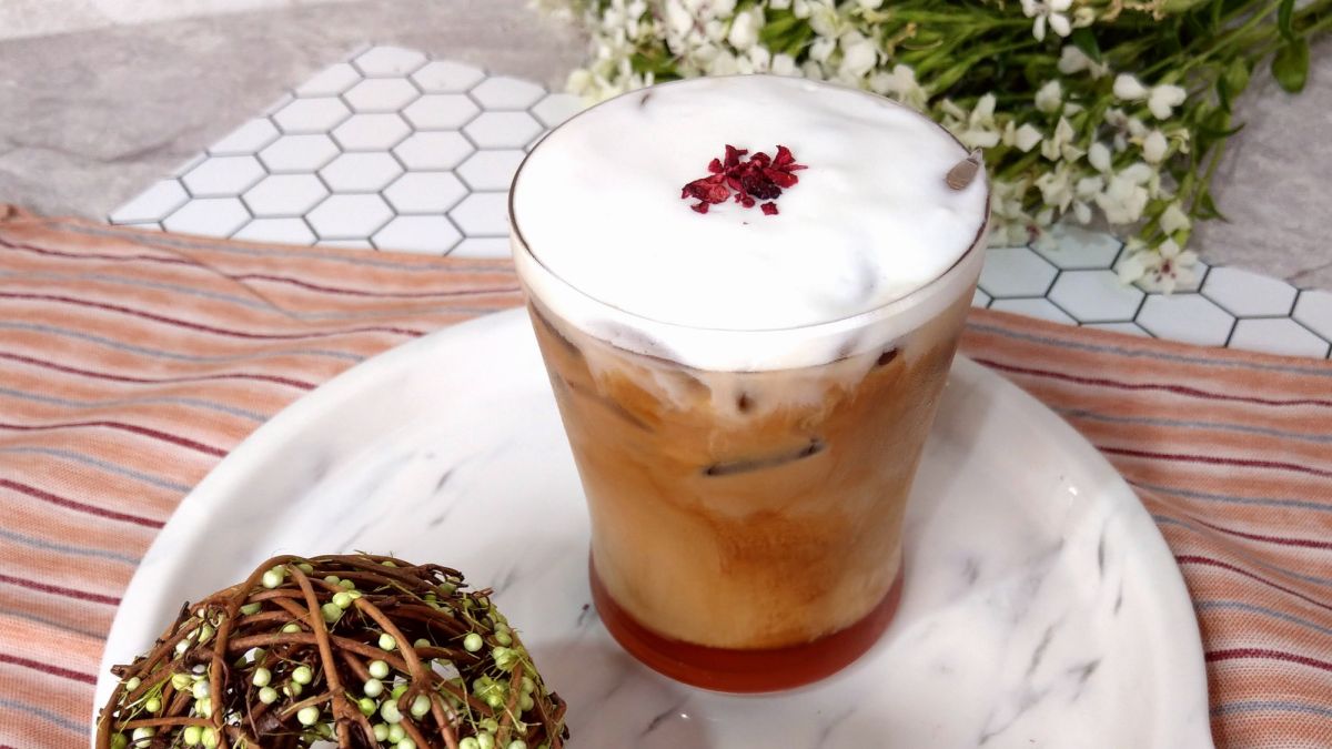 深焙菊苣根茶搭配花朵、水果元素,讓整杯飲品多了一層粉紅色的濾鏡,就像花仙子在花園飄飄起舞般優雅、可人。