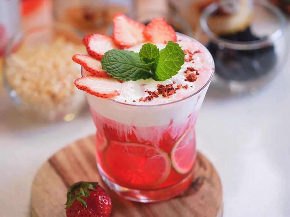 充滿浪漫色彩的輕盈粉色,豐富的甜美氣息層層圍繞,瀰漫著蔓越莓甜酸與芬芳的白桃的香氣,一入口,咀嚼的到新鮮蔓越莓果實口感,為整杯飲品帶來滿滿的驚喜。