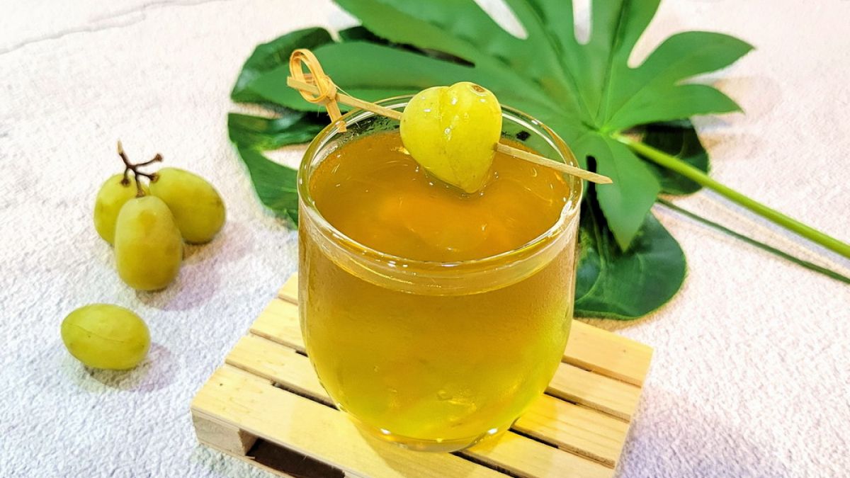 青葡萄風味糖漿擁有麝香葡萄高雅的香氣,也有葡萄晶瑩剔透清新的果香滋味。打碎的晶珠圓與青葡萄果凍就像是夜空中的繁星,讓飲品充滿光輝與光彩!