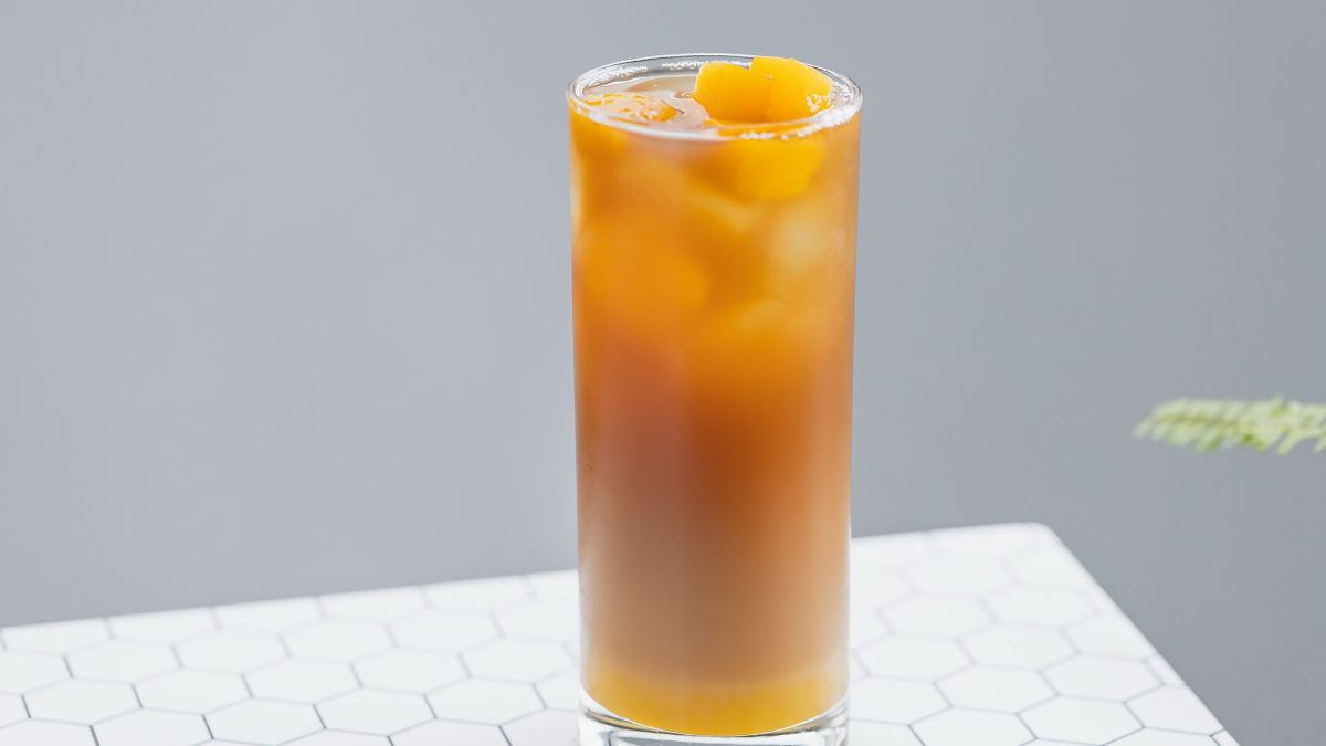 水蜜桃風味優酪思果與冰鎮紅茶結合,入口先是乳酸菌的微酸滑順,帶出紅茶的清爽茶韻,尾韻加入蜂蜜更添甘甜層次。