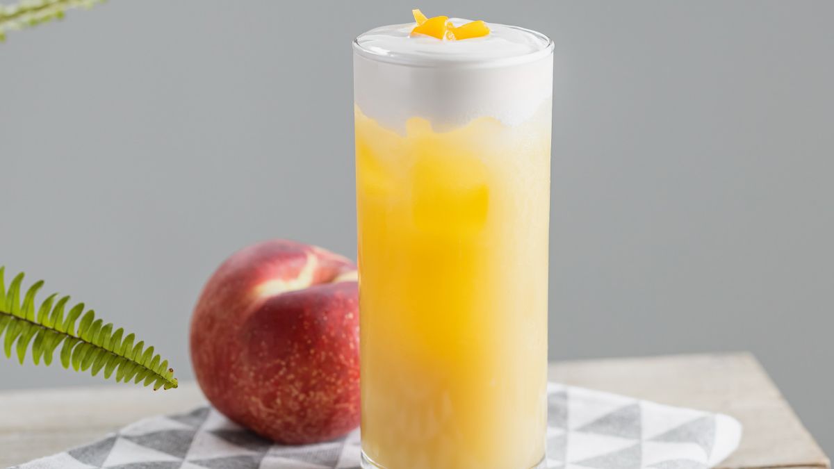 蜜桃風味優酪思果搭配冰茉莉綠茶,最上層鋪上湖鹽接骨木奶霜,花果香交織,鹹甜滑順,喝起來層次滿滿、細膩不膩口,是春夏人氣茶飲推薦。