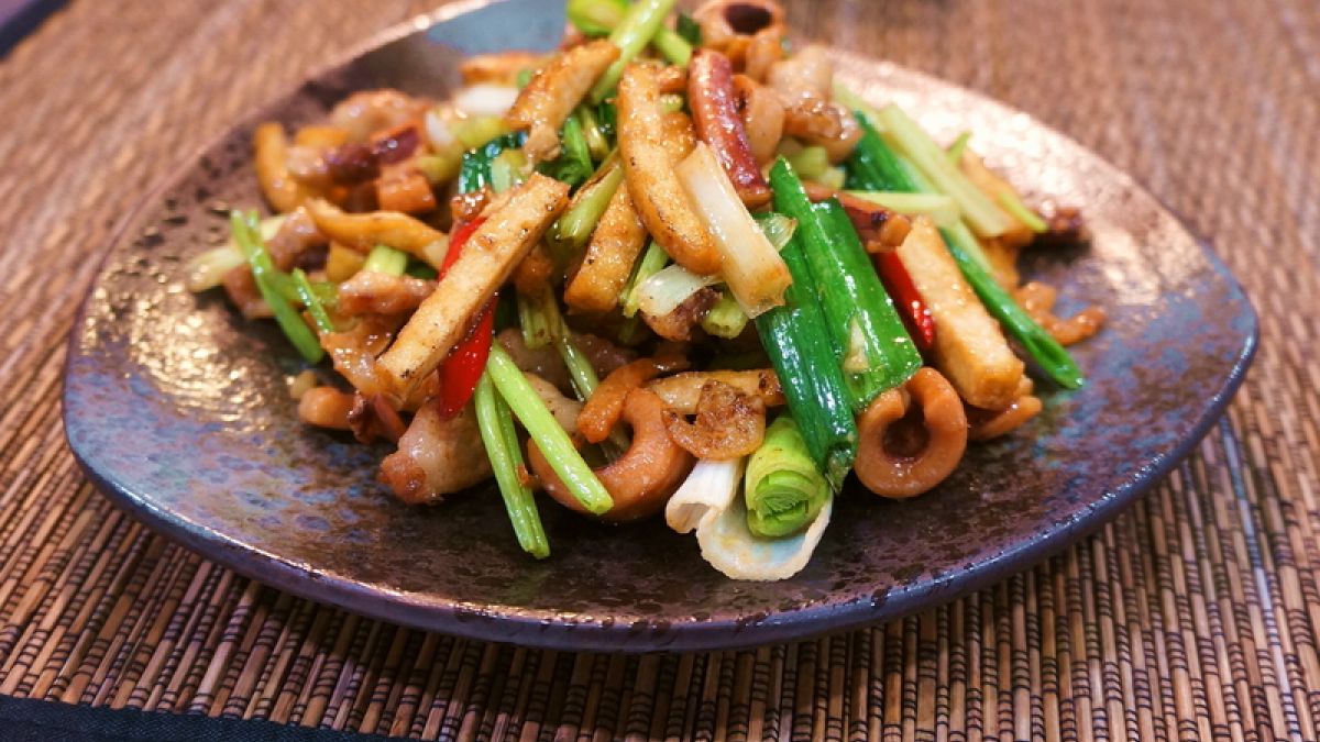 客家小炒是一道經典料理,講究的是濃香口感。