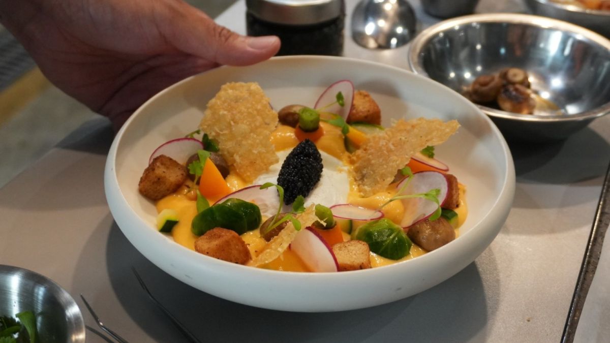 將【墨西哥紅椒風味】與馬鈴薯、紅甜椒、鮮奶油融合,打成輕盈的 Espuma——柔軟卻有性格。使用新鮮現刨的帕馬森起司,做成了金黃酥脆的起司脆片,再以【超濃起士調味粉】點綴,讓它充滿不同層次的起司風味。◣ 本食譜由 欣坊股份有限公司 研發主廚 施捷夫 開發設計