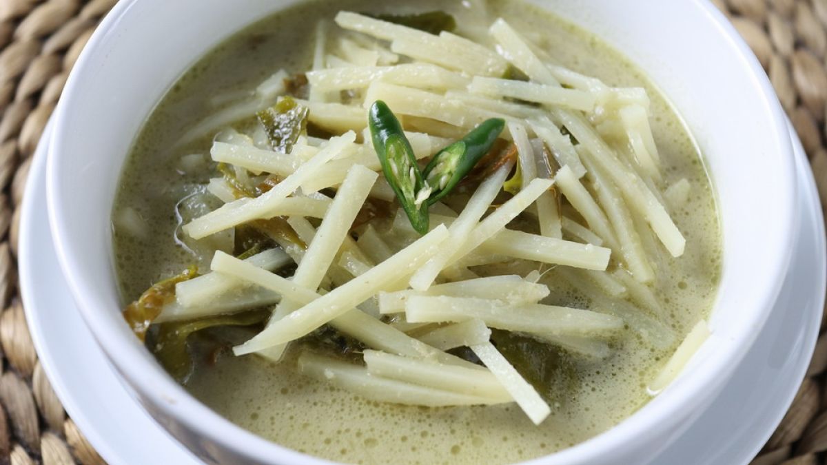 酸筍湯底以湯色乳白的雞白湯打底,熬製出醇濃雞肉的風味。搭配豐味通骨粉及蔬菜高湯粉,更能透出蔬果及雞肉鮮甜滋味。可依照個人口味加入洋蔥、蔥段、龍眼骨等食材,增加整體厚實度。