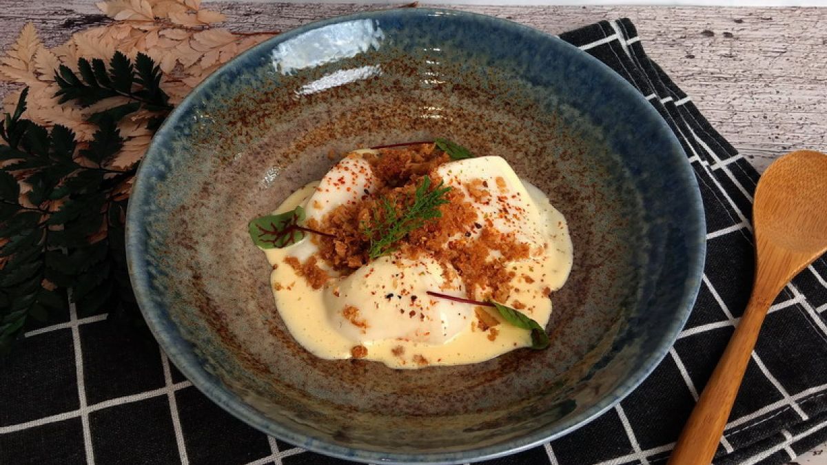 當鹹蛋黃奶蓋偶遇一塊豆腐酪~微甜鹹香甜香金黃醬搭配滑嫩順口豆腐酪,雙重綿密,滑順加倍!再配上灑上的肉鬆、酥脆洋蔥片及七味唐辛子,一口即享鹹、甜、香、嫩、滑多種口感,做為開胃料理再適合不過了!
