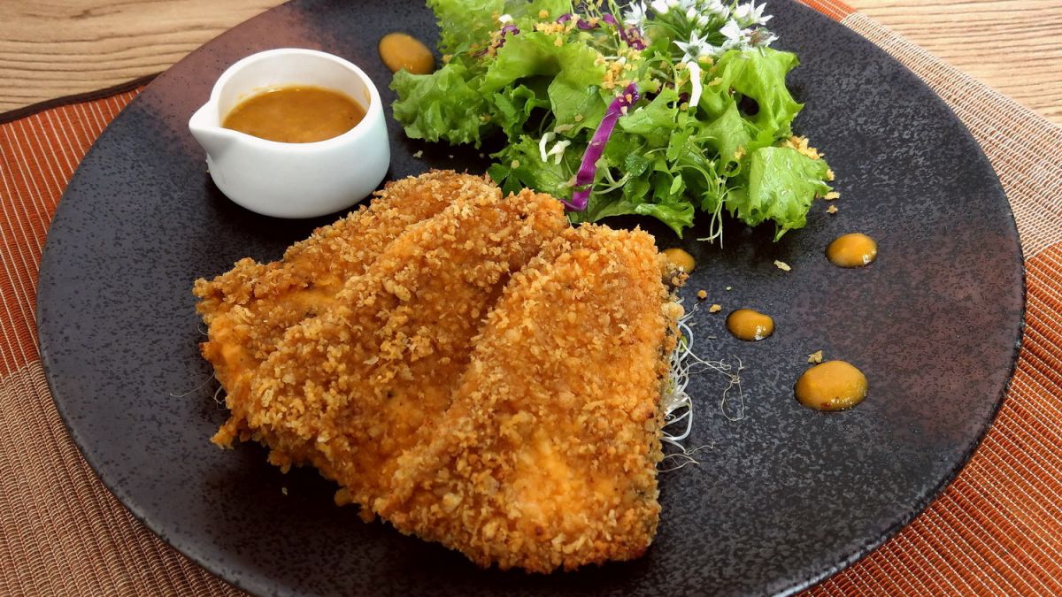 將金沙調味粉搭配麵包粉做成的金沙酥與鮮美甘甜的鮭魚結合,不僅更添鮭魚風味,也增添不同的口感。金沙鮭魚金沙風味鹹香,外皮酥脆有層次,拿來做為開味小點或沙拉再適合不過了!